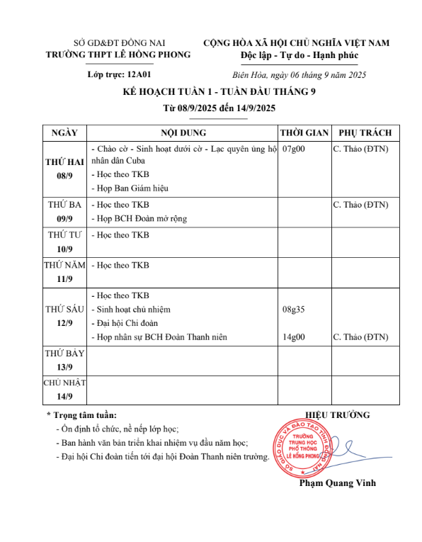 - Kế hoạch Tuần 1 (02/9 => 08/09/2024)
