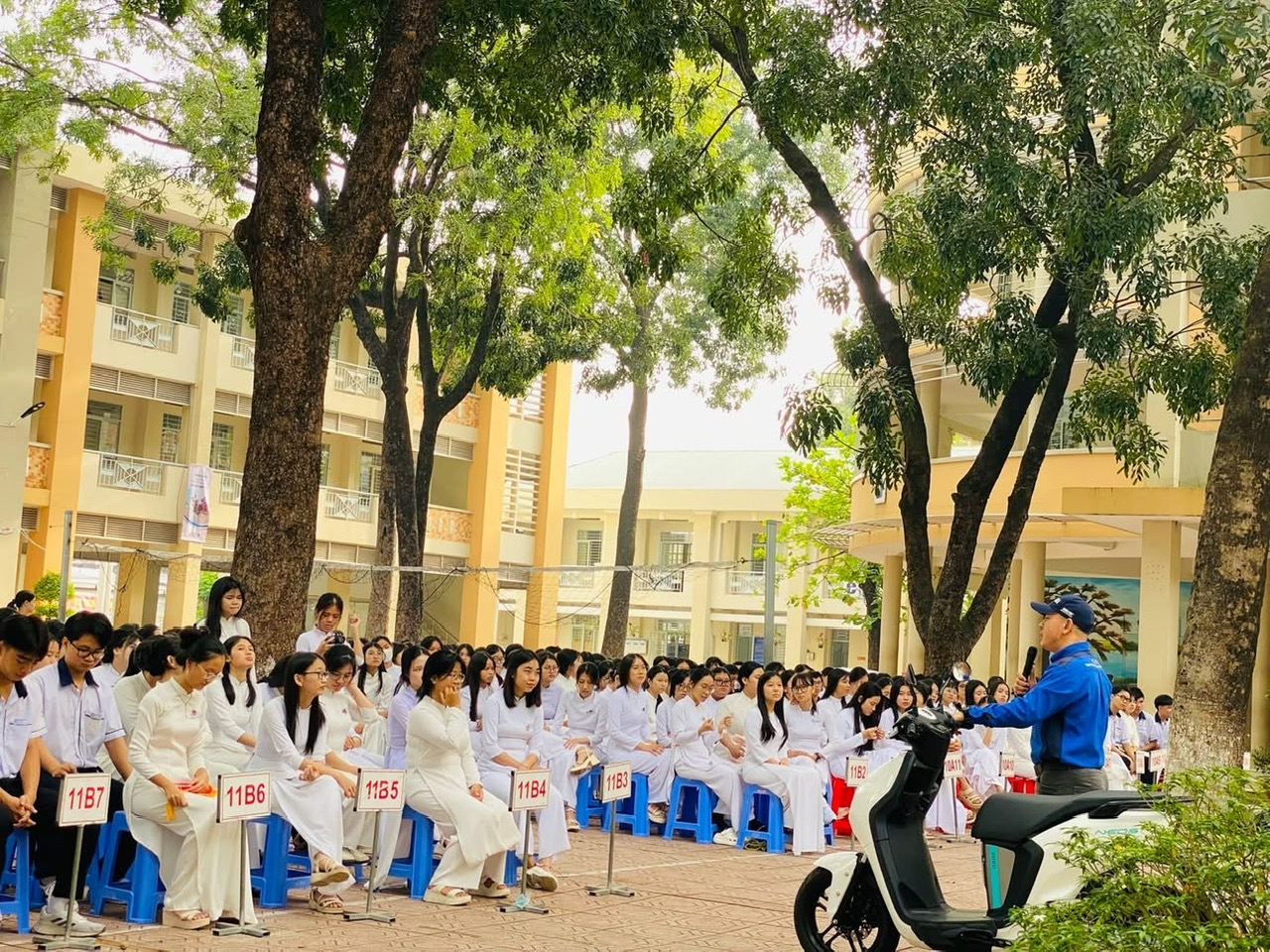 Sáng ngày 10/11/2025, Trường THPT Lê Hồng Phong phối hợp với Yamaha Motor Việt Nam đã tổ chức buổi Tập huấn Kĩ thuật lái xe Motor an toàn dành cho toàn thể học sinh trường. Buổi tập huấn được hướng dẫn trực tiếp bởi các Hướng dẫn viên chuyên nghiệp của Yamaha nhằm: