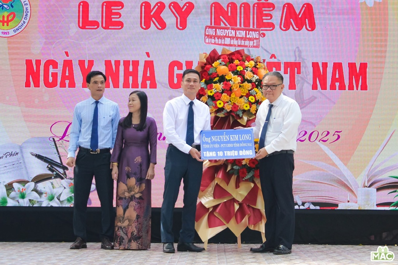 Nhân dịp này, Nhà trường cũng đã tri ân các thầy cô có nhiều đóng góp cho sự nghiệp giáo dục, tuyên dương khen thưởng các tập thể và cá nhân đạt thành tích xuất sắc trong phong trào thi đua chào mừng Ngày Nhà giáo Việt Nam.